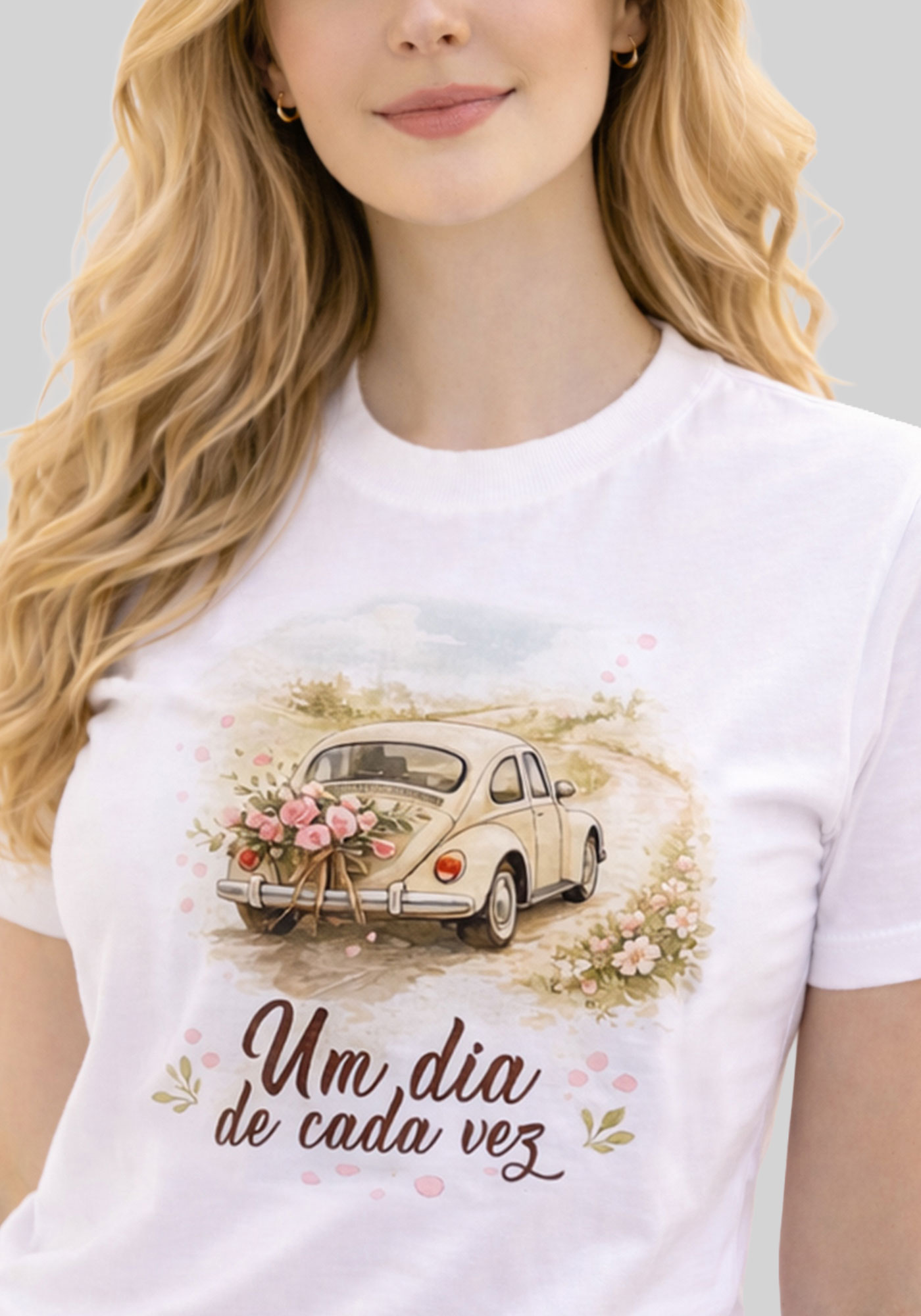 T-SHIRT FEMININA - UM DIA DE CADA VEZ- COR MARFIM