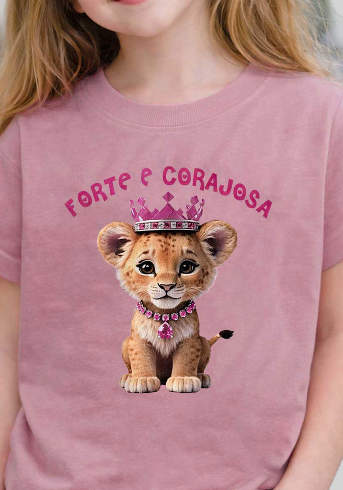 INFANTIL FEMININA - LEÃO FORTE E CORAJOSA - COR ROSA CLARO