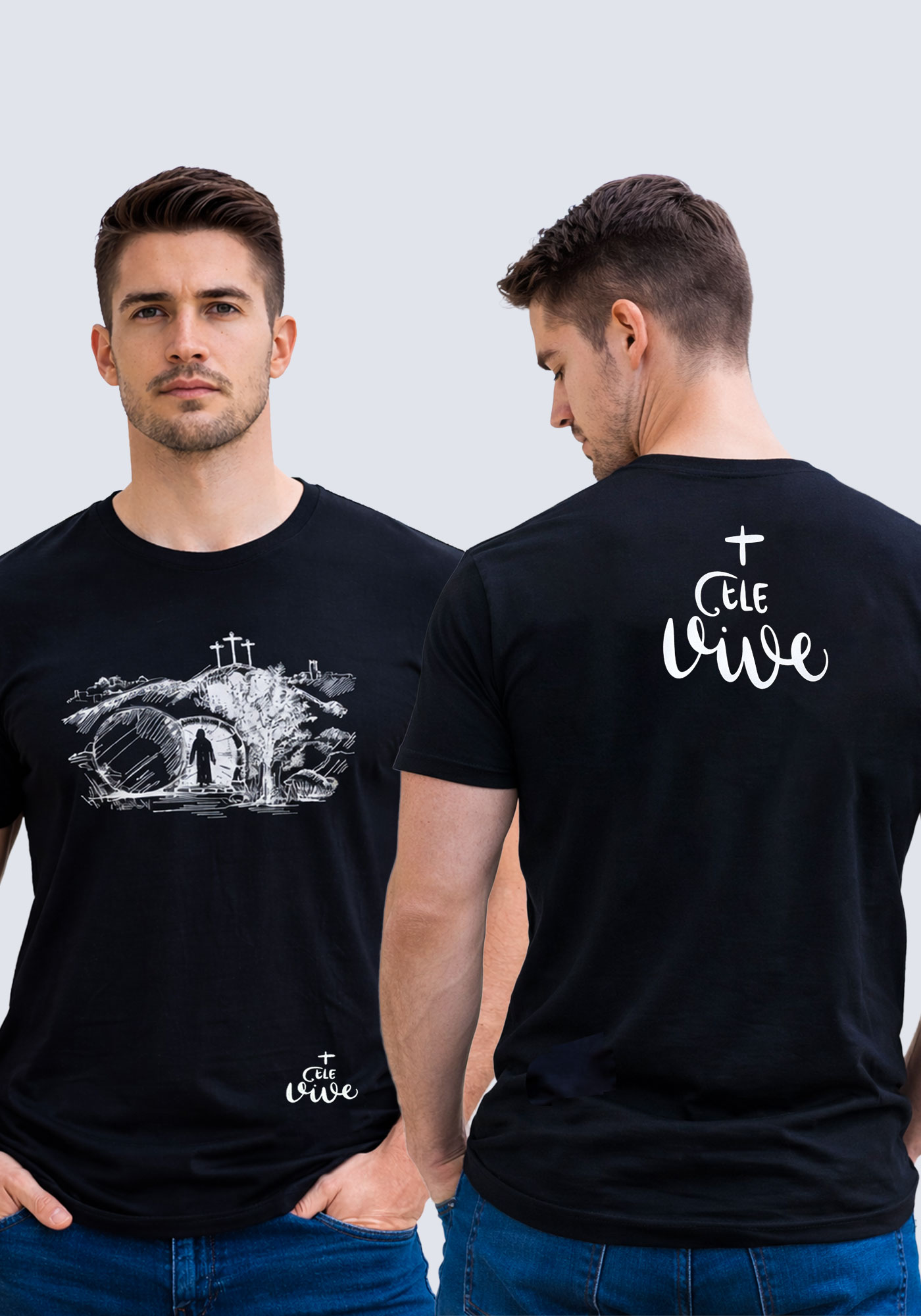 T-SHIRT MASCULINA - CRUZ ELE VIVE - COR PRETO