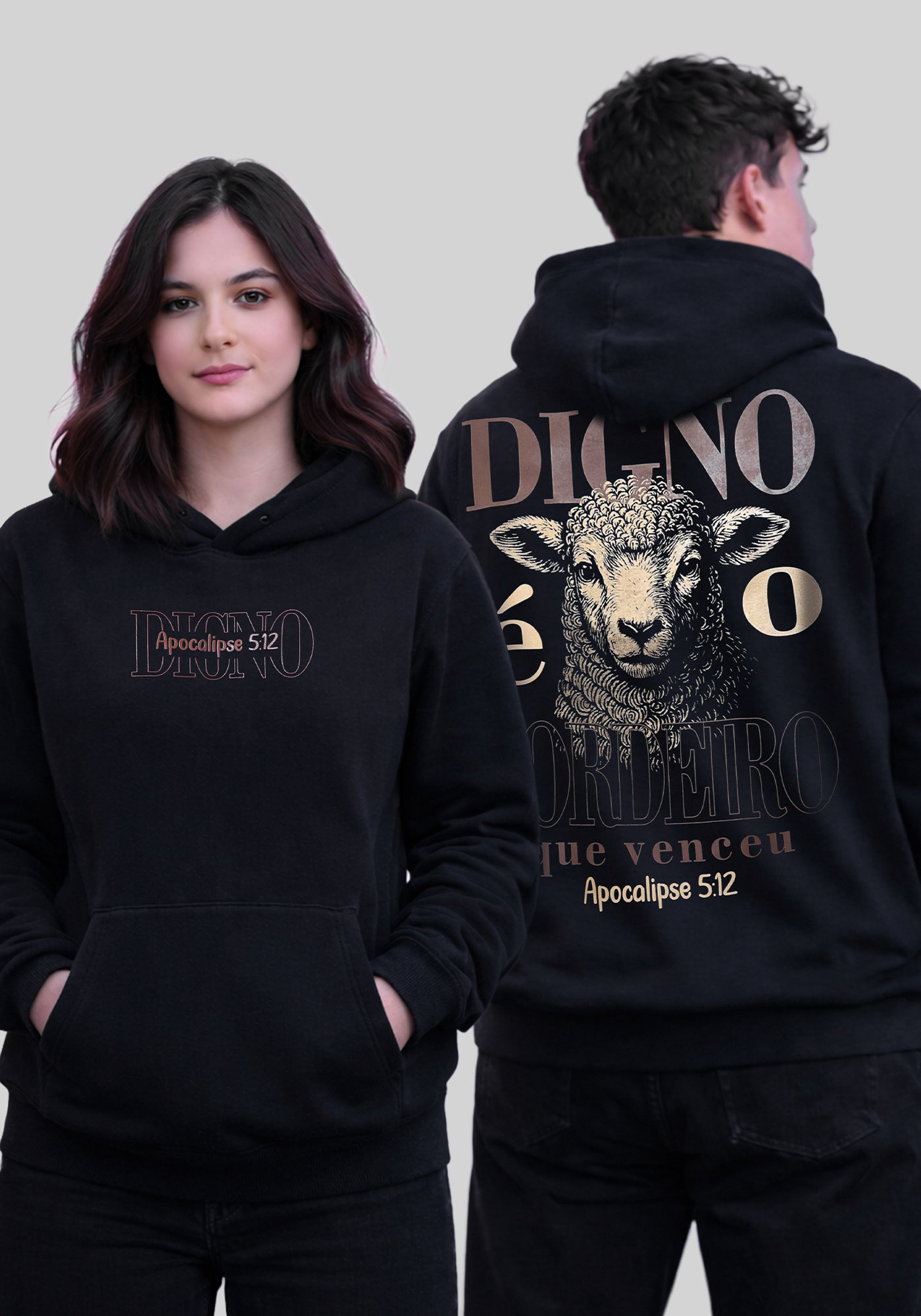 MOLETOM CAPUZ - DIGNO É O CORDEIRO - COR PRETO