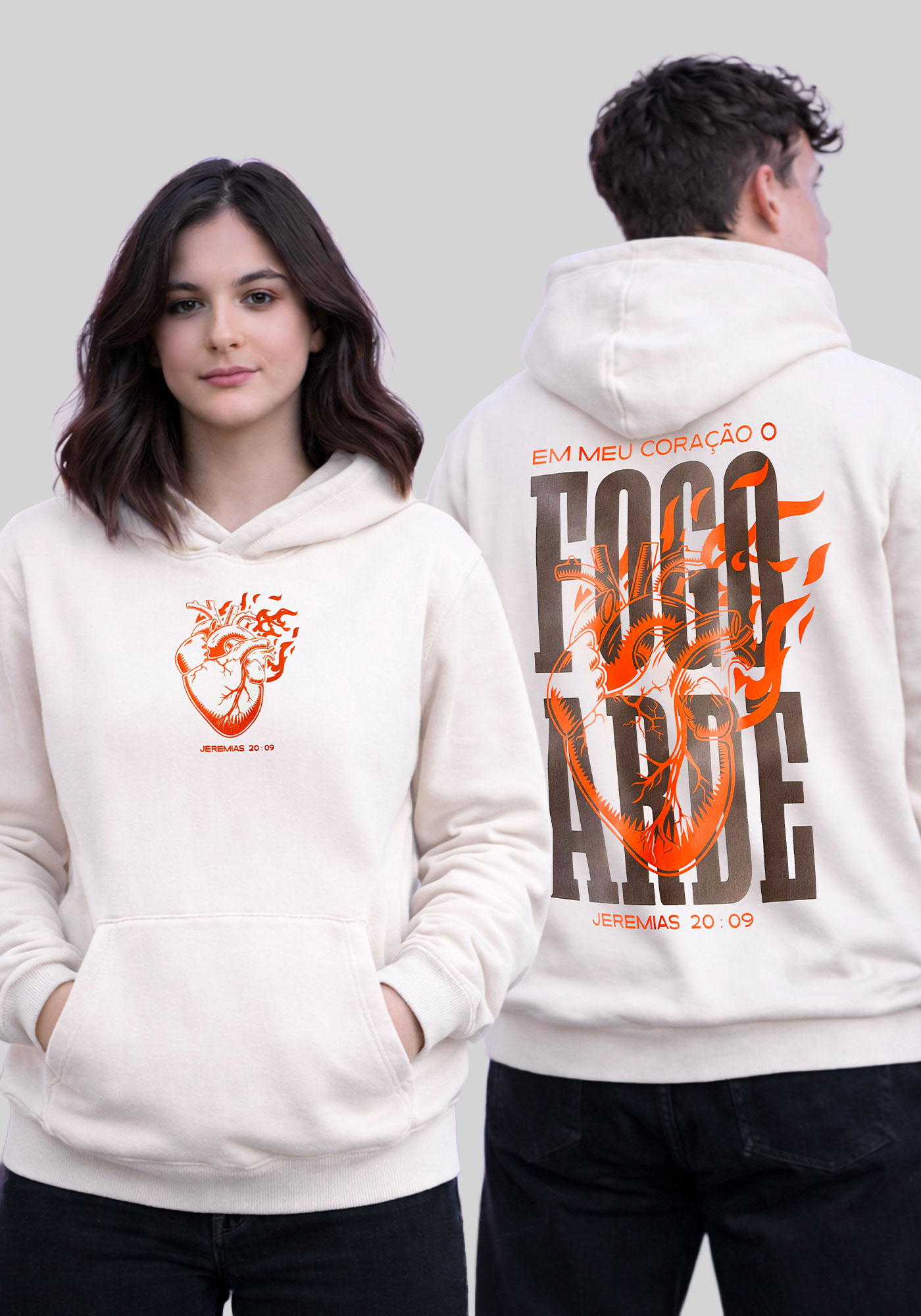 MOLETOM CAPUZ - EM MEU CORAÇÃO O FOGO ARDE - COR MARFIM