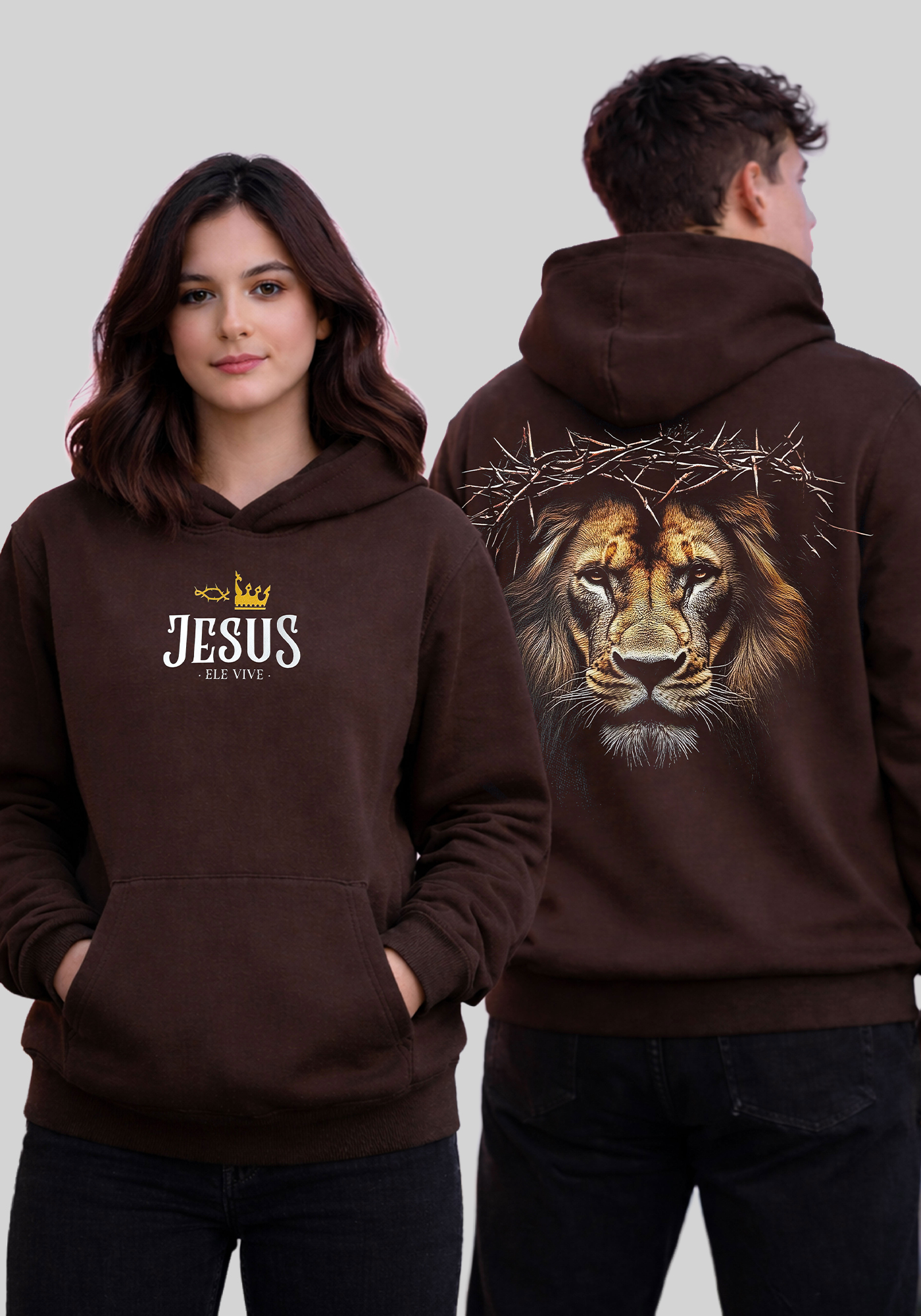 MOLETOM CAPUZ - LEÃO ELE VIVE COROA - MARROM