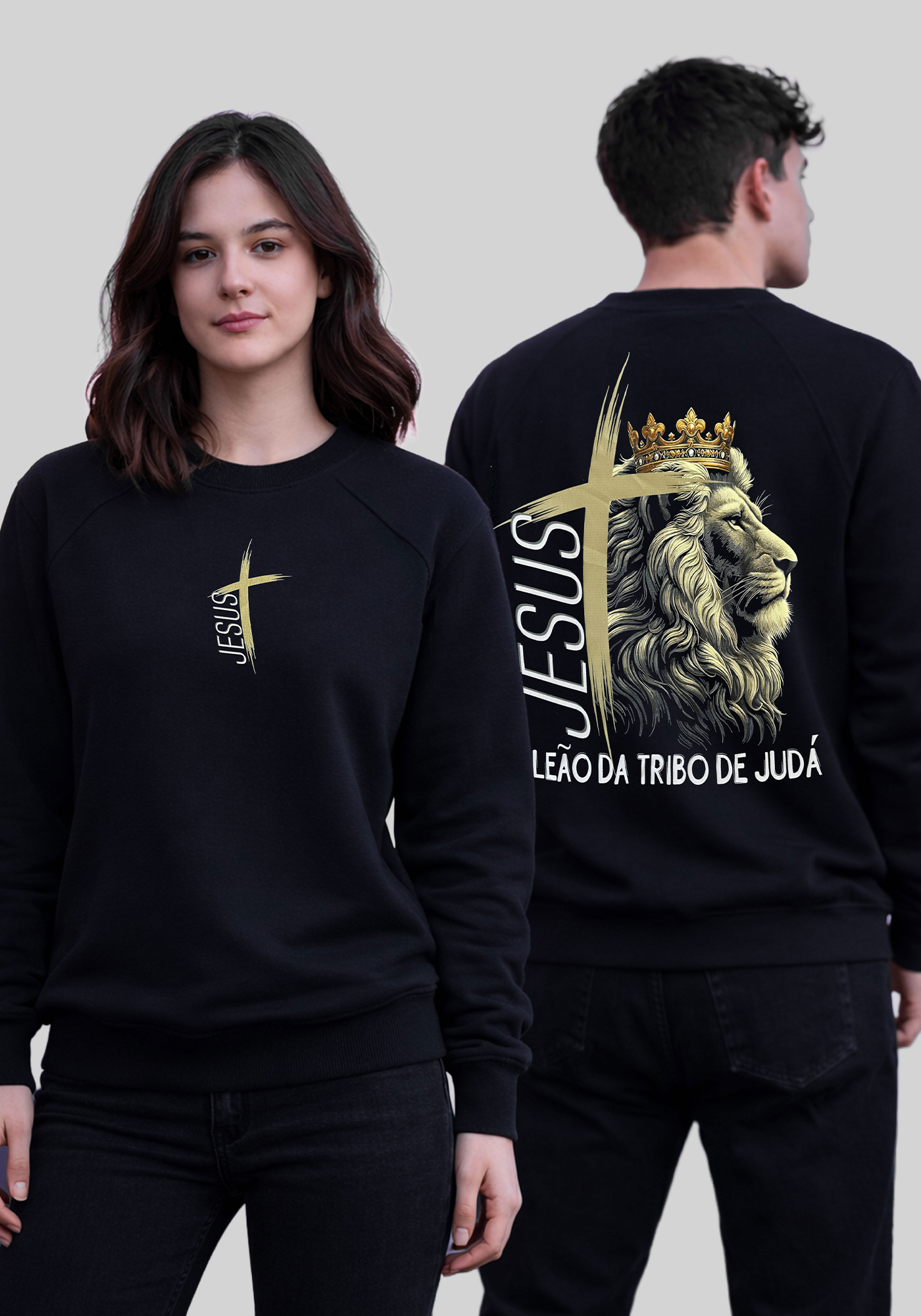 MOLETOM RAGLAN - LEÃO COROA TRIBO DE JUDÁ - COR PRETO