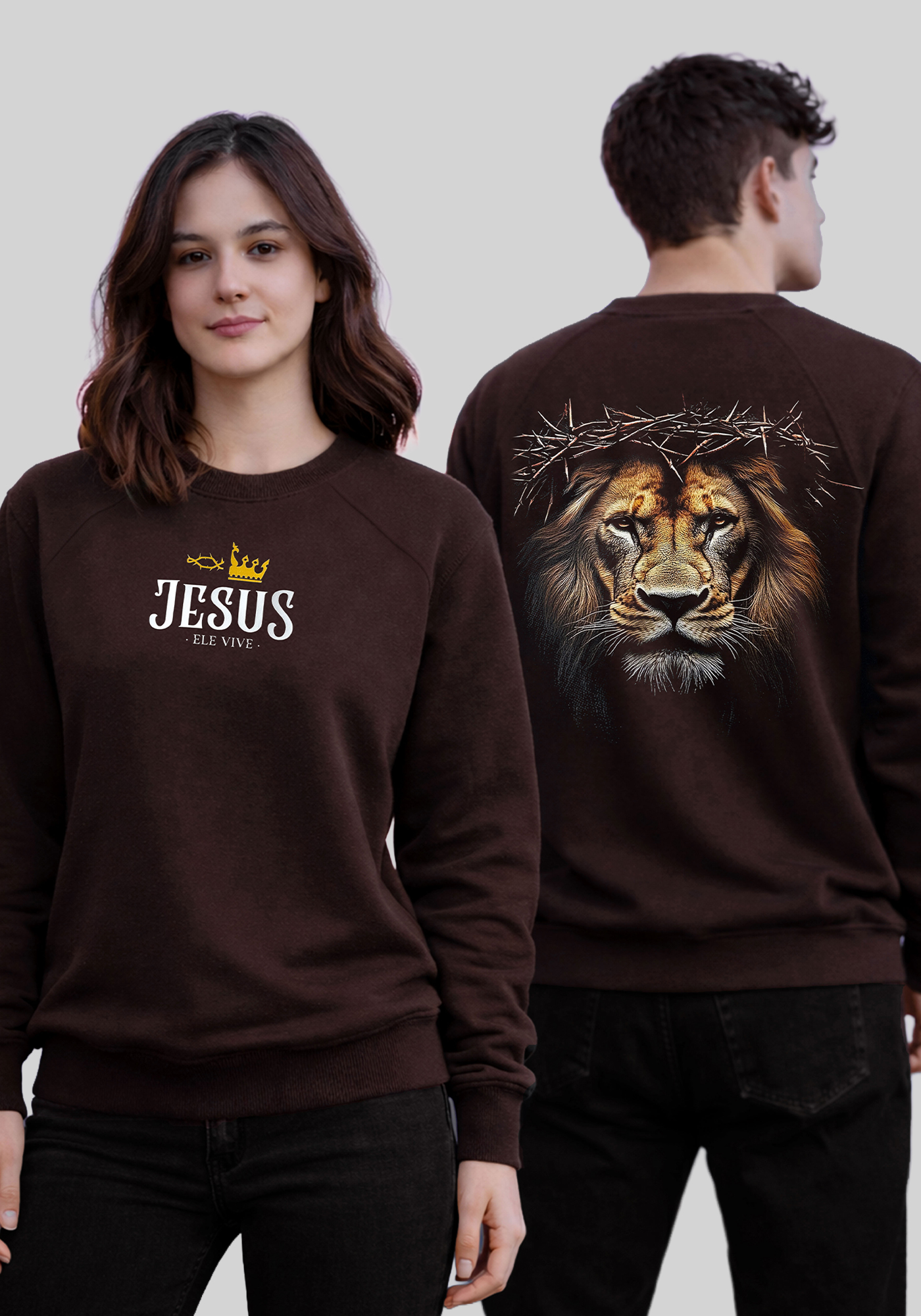 MOLETOM RAGLAN - LEÃO ELE VIVE COROA - MARROM