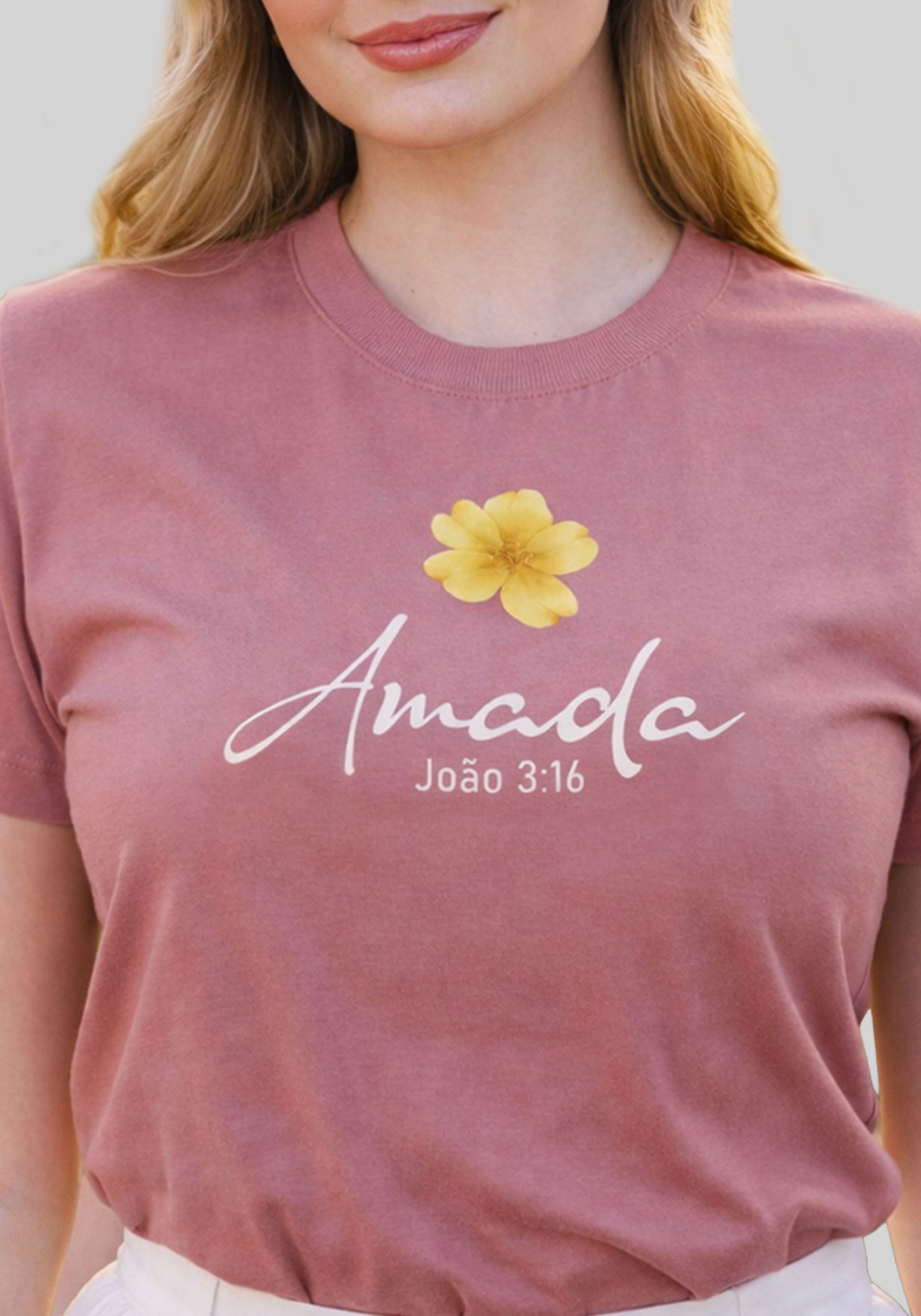 T-SHIRT FEMININA - AMADA JOÃO 3:16 - COR ROSA CLARO