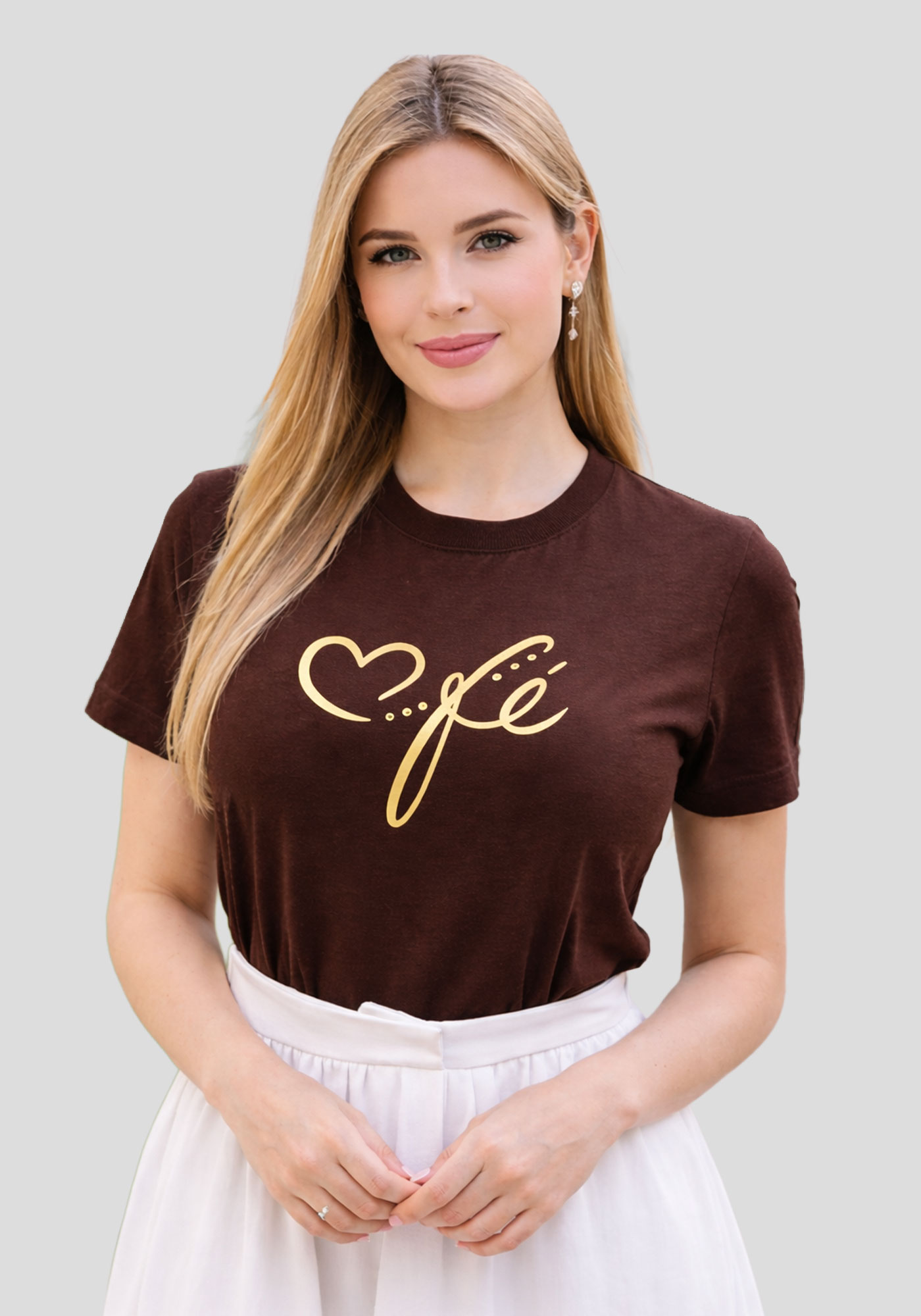 T-SHIRT FEMININA - FÉ CORAÇÃO - COR MARROM