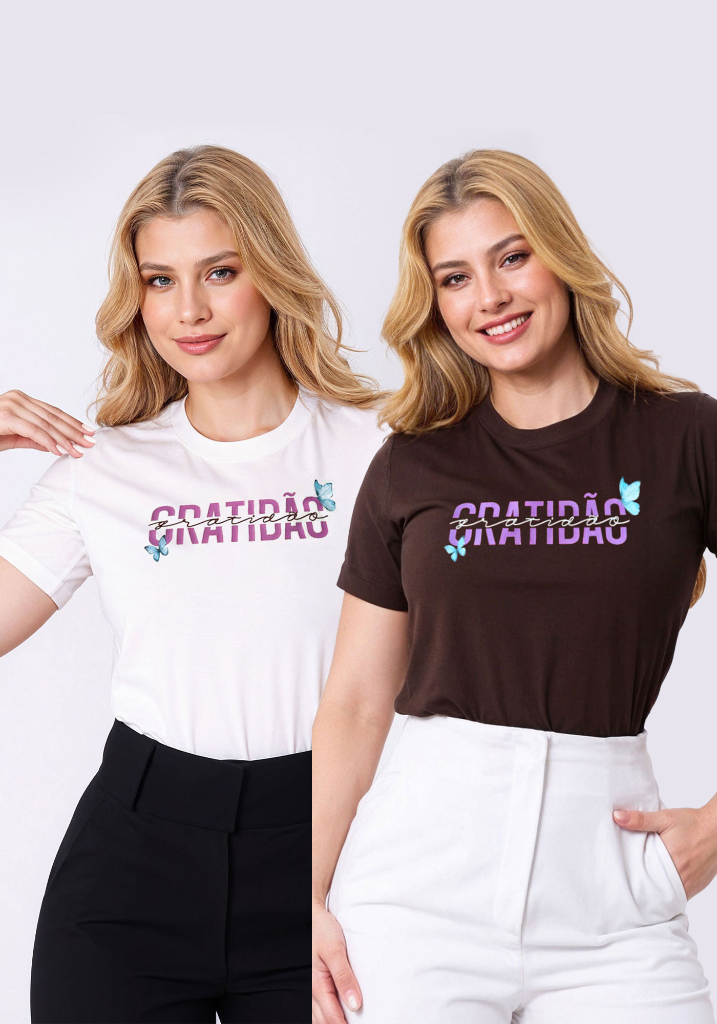 T-SHIRT FEMININA - GRATIDÃO BORBOLETA