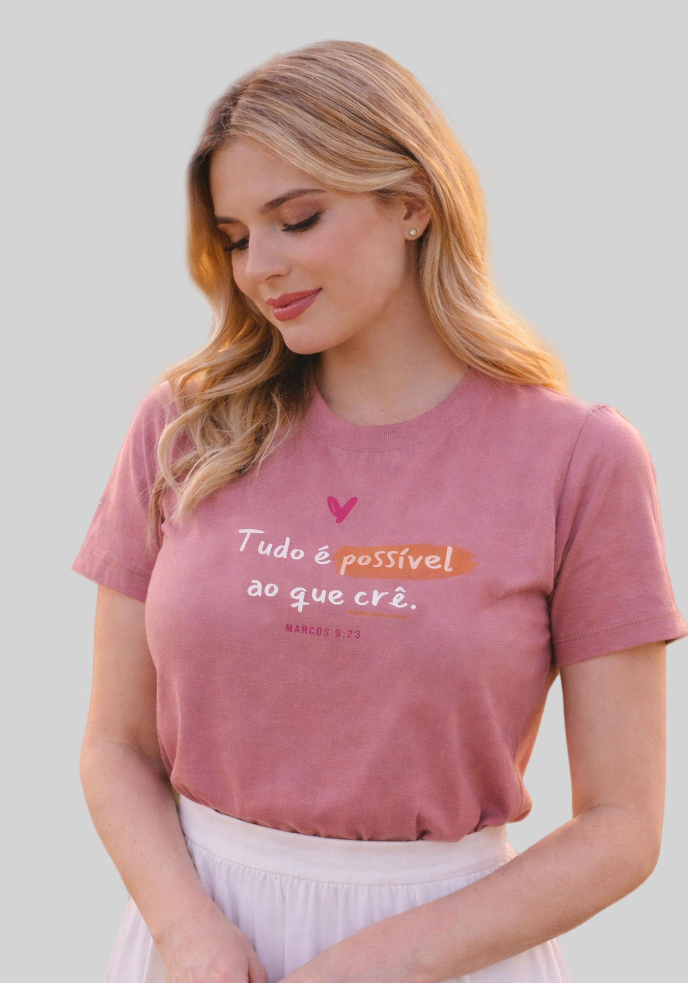 T-SHIRT FEMININA - MARCOS 9:23 TUDO É POSSÍVEL - COR ROSA CLARO