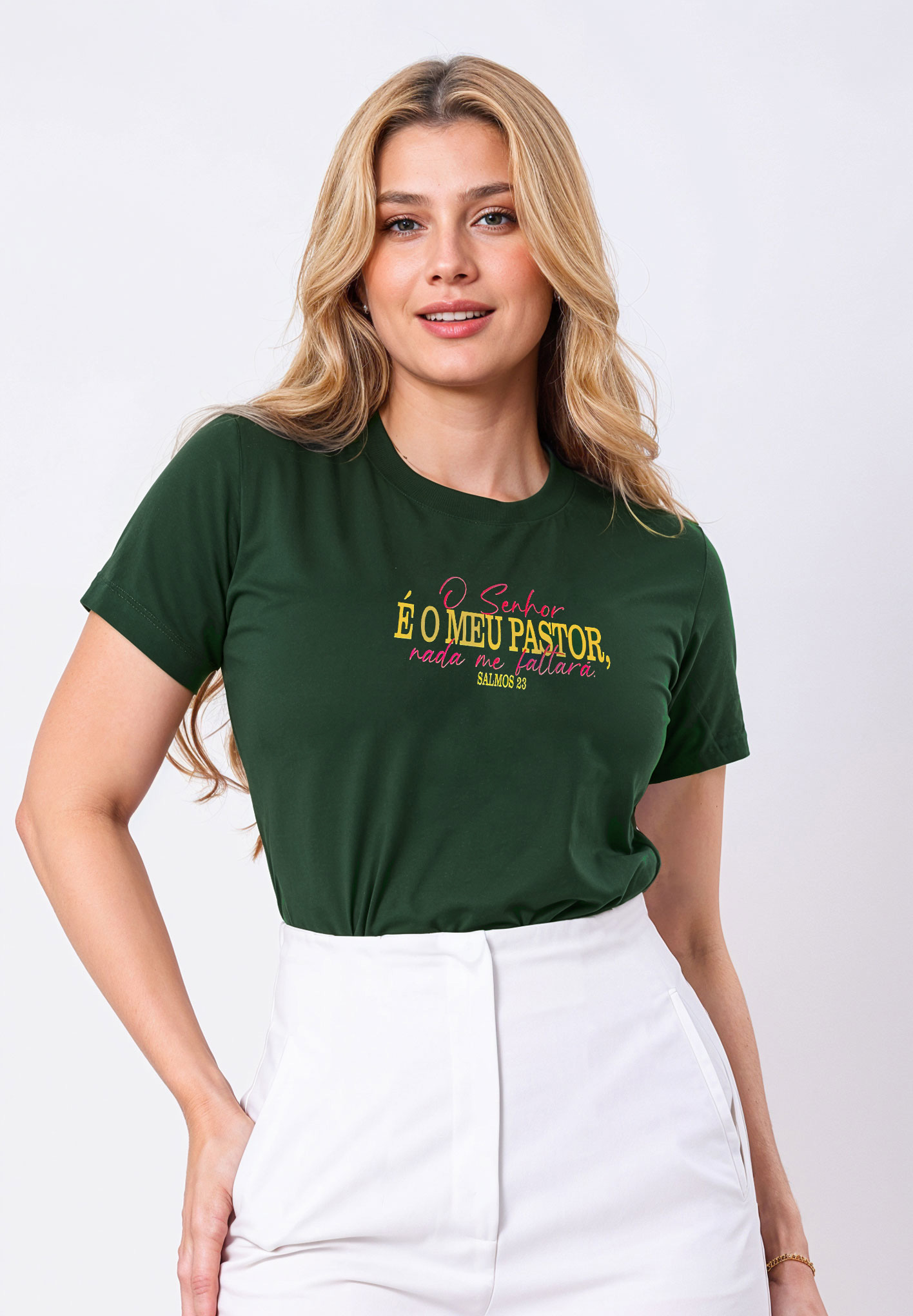 T-SHIRT FEMININA - O SENHOR É O MEU PASTOR - COR VERDE PROFUNDO