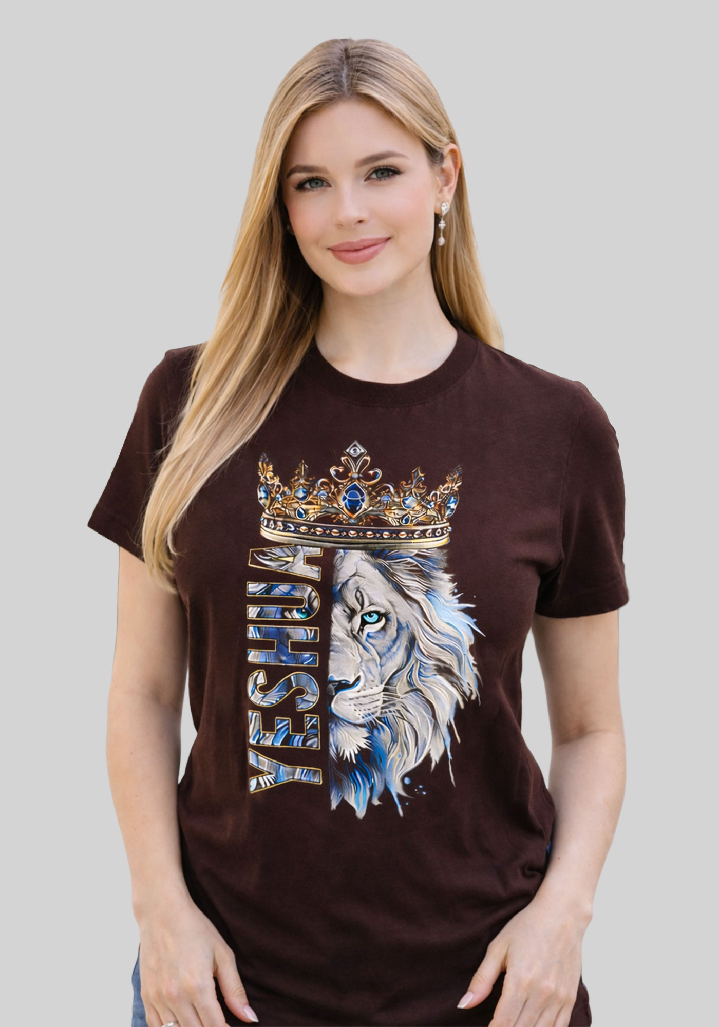 T-SHIRT FEMININA - LEÃO YESHUA COROA - COR MARROM